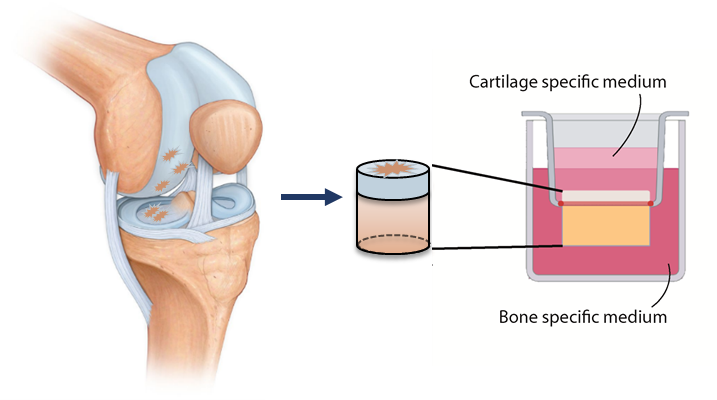 De kraakbeencellen die Kleuskens gebruikte, waren afkomstig uit de verwijderde knieën van patiënten. Kraakbeen dus uit een aangetast gewricht van veelal oudere mensen. De vraag was of dat wel het juiste bronmateriaal is om vitaal kraakbeenweefsel uit op te kweken. “Ik heb de kweekresultaten daarom vergeleken met resultaten met kraakbeencellen van jongere, gezonde mensen afkomstig van het UMC Utrecht. Ik heb geen verschil gevonden met patiëntweefsel, dat dus prima geschikt lijkt om mee te werken. Dat is bovendien materiaal dat voldoende beschikbaar is en waarmee anders niets zou worden gedaan.”