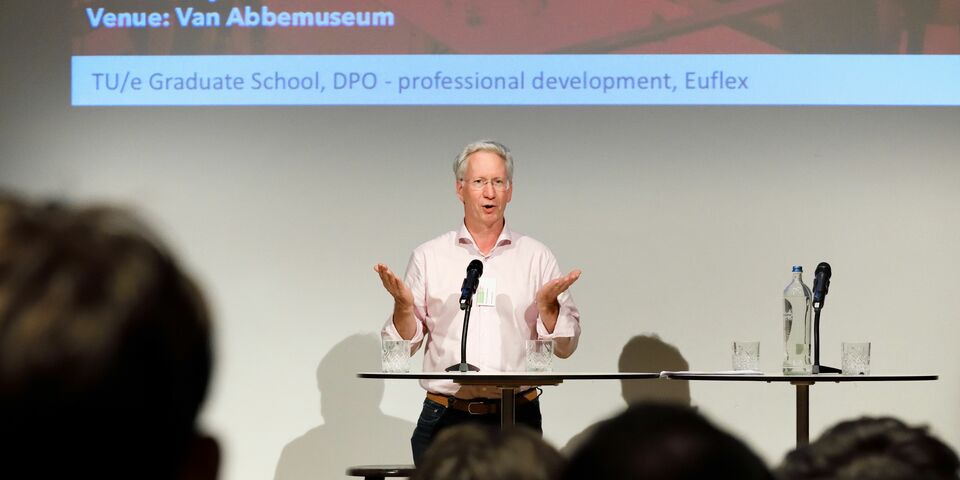 Dat de denktank ook mogelijkheden ziet om bij de groep van technologisch ontwerpers, de EngD-trainees, groei te bewerkstelligen is iets waar Koenraad zelf al mee bezig is. Al moet hij glimlachen als hem wordt voorgehouden dat de denktank mikt op een toekomstige duizend tot tweeduizend ontwerpers. Nu zijn dat er zo’n 250. “We moeten bij het bedrijfsleven nog duidelijker over het voetlicht brengen dat een EngD-trainee beschikt over meer ervaring en kennis dan een afgestudeerde masterstudent. We hebben daar inmiddels op centraal niveau iemand op ingezet die bij bedrijven de deuren platloopt met die boodschap. Dat heeft al twaalf nieuwe projecten bij bedrijven opgeleverd. Daarnaast willen we ook meer projectmatig gaan werken. We kiezen dan een onderwerp, en samen met diverse bedrijven waarvoor dat onderwerp interessant is, gaan dan een aantal technologisch ontwerpers aan de slag. We gaan tevens kijken of daar ook externe subsidie voor te verkrijgen is.”