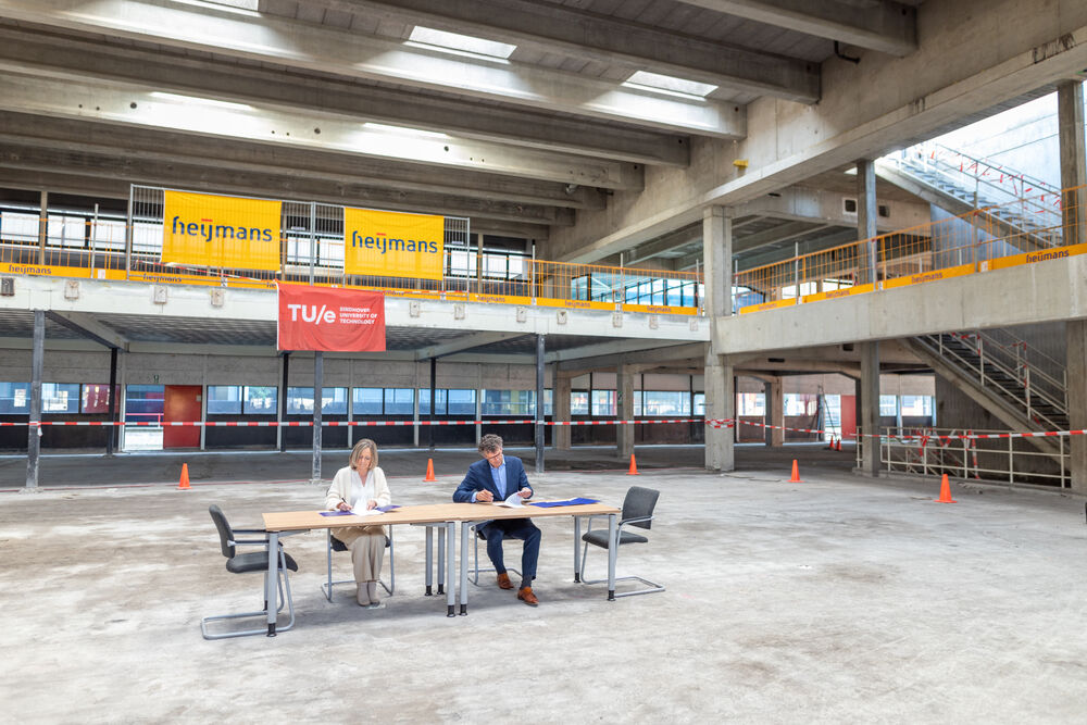 Het strippen van Gemini-Noord begon al in 2021, maar deze maand gaat bouwbedrijf Heijmans van start met de renovatie van dit deel van het kolossale pand waar de faculteiten Mechanical Engineering en Biomedical Engineering in zitten. Laboratoria en onderwijs- en studieruimtes worden vernieuwd en uitgebreid, de kosten bedragen 33 miljoen euro. Gisteren was er een tekenmomentje, de oplevering is gepland voor oktober 2024.