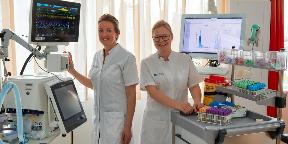 Voor beide patiëntgroepen was de vraagstelling net iets anders, maar met het overkoepelende doel om te achterhalen hoe technologie het herstel van een net geopereerde patiënt kan verbeteren door verslechtering eerder te herkennen. Eveline: “Patiënten die een oncologische buikoperatie ondergaan, verblijven slechts kort op de IC. Daarna hebben ze vaak een langere zaalopname omdat de kans op complicaties groter is. Op de IC liggen ze aan continue monitoring, maar op zaal is dat nog maar een paar keer per dag.
