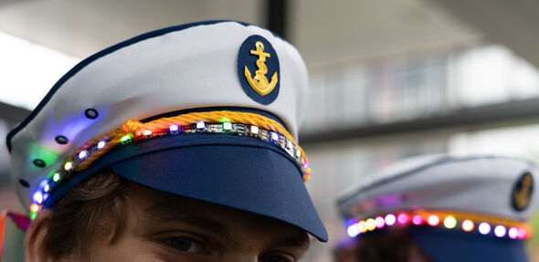 Ship ahoy: deze kapiteins (twee op één schip, zou dat goed gaan?) en matrozen zijn ook in het donker makkelijk te vinden door de lichtjes op hun petten. Ze zijn van Electrical Engineering ‘en dan moeten er lichtjes op’ wist een van de papa’s. De petten van de kiddo’s geven helaas nog geen licht, maar dat beloven ze vanavond te gaan fixen. Het geheel werkt met een soort hub die je verbindt middels wifi aan een access point dat je maakt met je telefoon. Tech- én zeewaardig!