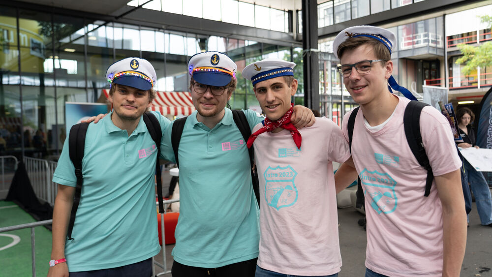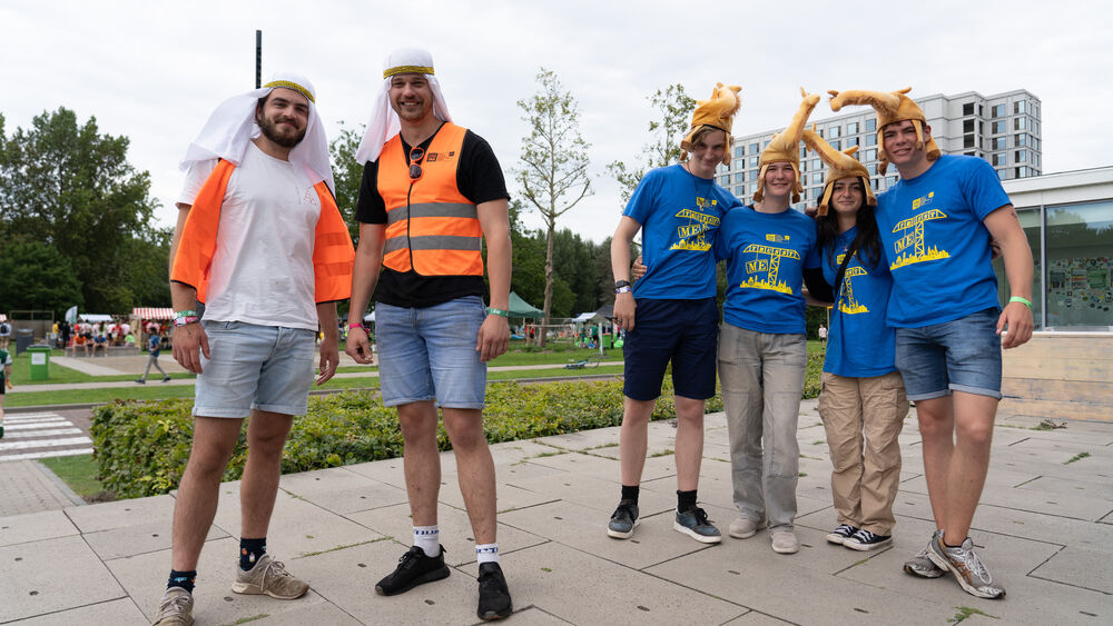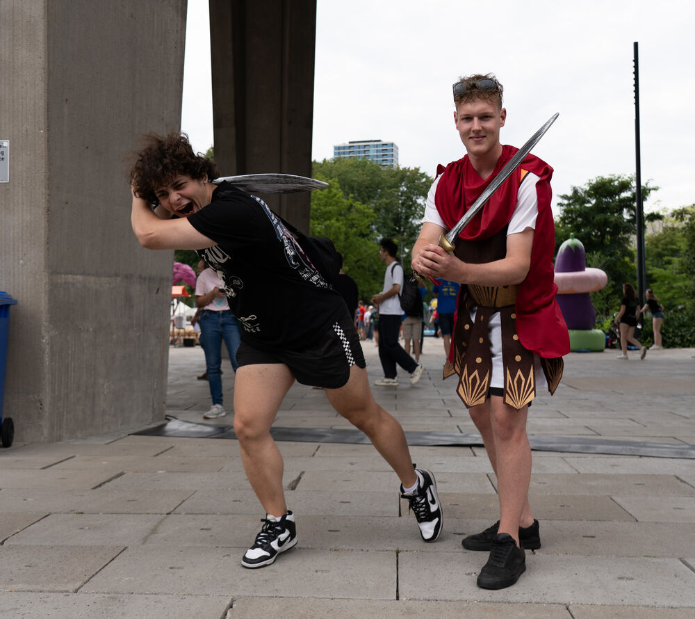 Deze dappere zwaardvechters kwamen we tegen voor Atlas. De herengroep verbonden aan Simon Stevin had een duidelijke gedachte achter het kostuum en de zwaarden: de Intro is alsof je een strijd aangaat. Een pittige week. Ze lijken overigens niet alleen in die gedachte: zwaarden zijn populair dit jaar.