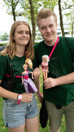 Ken en Barbie liepen voorbij nabij Gemini. Of Barbie en Barbie? Beide kiddo’s hadden in ieder geval een Barbie om hun middel en één van hen ook nog een Barbie-ring om de vinger. De intromama bleek Barbiefan en besloot tot dit thema. Ken: “We moesten ook de liefde verklaren aan iemand die hoog zit in het bestuur. Dat heb ik gedaan door het geven van mijn ring”, zo verklaart hij zijn kale hand.