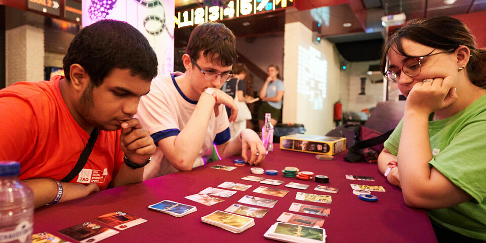 Neem Margalena. De Griekse - die Bouwkunde gaat studeren en een kamer huurt in woontoren Luna - heeft net een halfuur Splendor gespeeld met drie jongens die ze een uur geleden nog niet kende. “Ik ben geen feesttype”, legt ze uit, “maar als ik de kans krijg een avond door te brengen met mensen die ook van spelletjes houden, ben ik erbij. Ik denk dat hier betekenisvollere relaties ontstaan dan tijdens hossen in een drukke kroeg.”