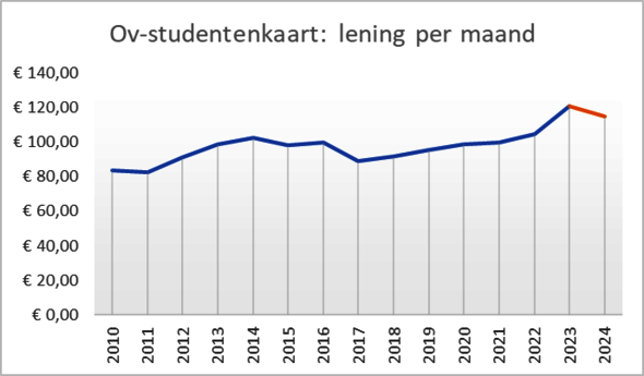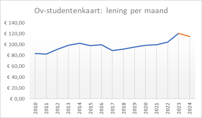 Die maandelijkse lening gaat nu een beetje omlaag van 121 naar 115 euro per maand, staat in antwoord op Kamervragen. Dat scheelt dus 72 euro per jaar. De vergoeding schommelde jarenlang rond de 100 euro per maand, maar in 2023 schoot het bedrag omhoog.