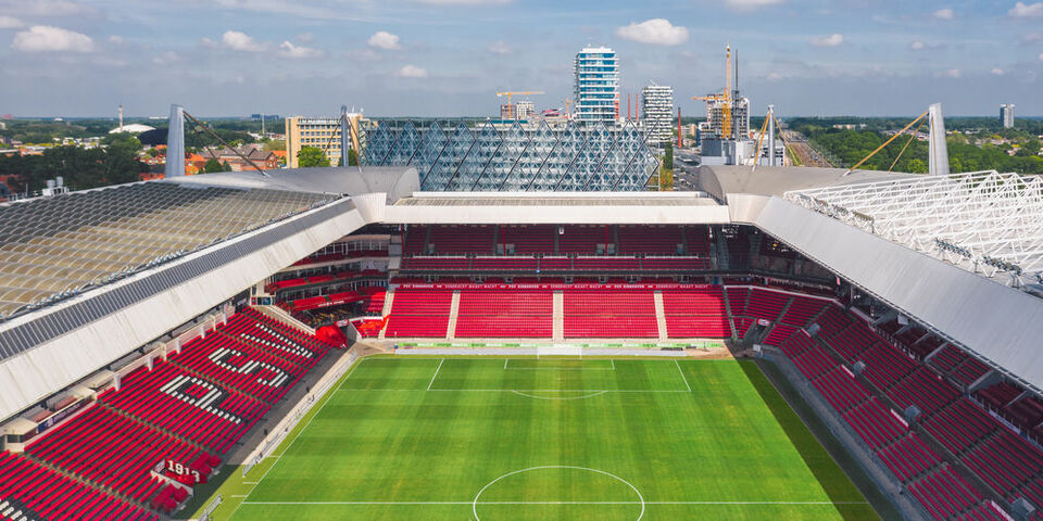 Niettemin neemt PSV geen risico, nu onderzoek aan het licht heeft gebracht dat de constructie van het uitvak (op de foto in de rechterhoek bovenin) mogelijk kwetsbaar is. Voorlopig mag het vak maar voor de helft gevuld worden, wat betekent dat er gisteren bij de wedstrijd tegen FC Twente uitsupporters teleurgesteld moesten worden.
