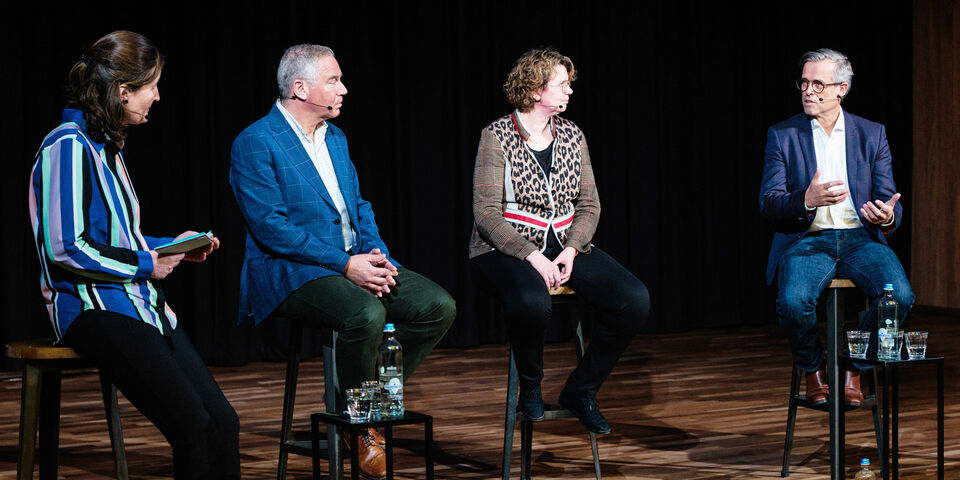 De tweede sessie in de nieuwe debatreeks van NWO vond gisteren plaats aan de TU/e. Het thema was onbelemmerde samenwerking met bedrijven en onderling door universiteiten in verschillende landen. NWO-voorzitter Marcel Levi ging onder leiding van presentator Lucella Carasso in gesprek met Bart Smolders (decaan Electrical Engineering), Yvonne van der Meer (hoogleraar bij Maastricht University) en Marcel Geurts van NXP. “Samenwerking is erg belangrijk want op het grensvlak van diverse disciplines ontstaan nieuwe inzichten.”
