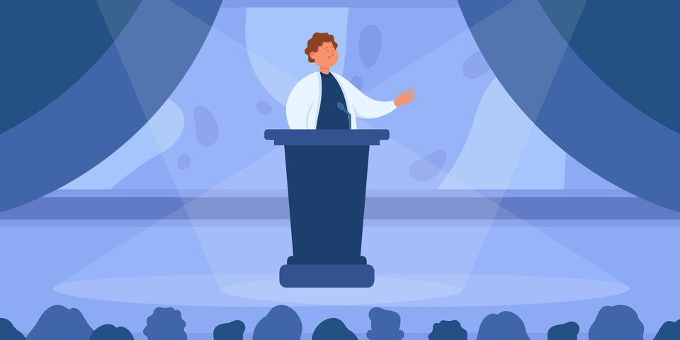 Zijn belangrijkste advies? “Mensen gaan vaak heel snel praten als ze nerveus zijn, omdat ze er zo snel mogelijk doorheen willen zijn, maar het is juist heel belangrijk om je tijd te nemen. Anders begrijpt het publiek niet wat je zegt.” Wat volgens hem helpt is om je voor te stellen dat je het verhaal aan een lege zaal of alleen aan een paar mensen vertelt.