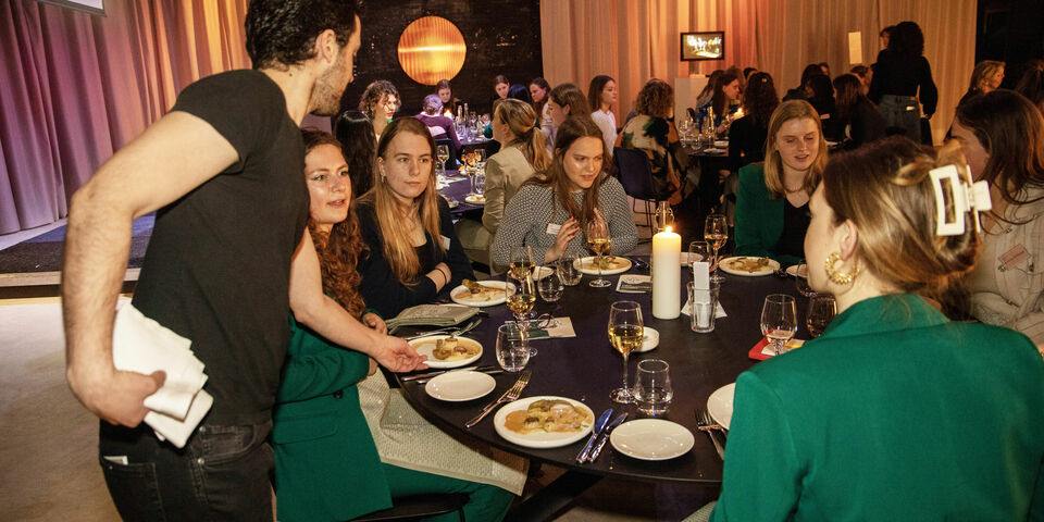 Zover zijn niet alle SSRE-vrouwen al. Aan tafel wordt aan Emma Ambags (werkzaam bij Datacation, haar eerste baan na haar TU/e-master OML) een existentiële vraag gesteld. “Hoe weet je wat je wilt? Dat vind ik zo moeilijk”, zegt een ID-studente. Een tafel verderop, bij de plak vlees met verschillende bijzondere groenten, heeft alumna Martine Pelser ( Technische Bedrijfskunde) wel tips hoe je daar achter kunt komen. “Blijf jezelf. Vraag je na iedere actie af of je een rol hebt gespeeld of dat je authentiek was. Dat doe ik ook nog steeds. Ook als ik vanavond thuis ben gekomen.”