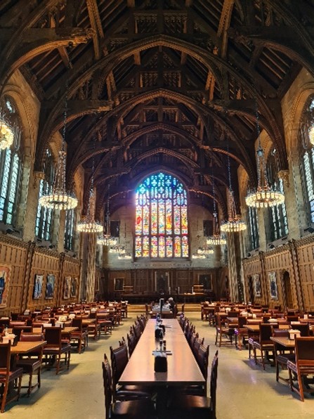 In één woord: prachtig! Misschien lag het aan de jetlag, maar als je hier de campus oploopt, is het net of je in een andere wereld bent beland. Allemaal mooie oude gebouwen waarvan sommige voor colleges dienen en alle andere kamers zijn voor de studenten. Iedereen leeft op de campus en eet samen in een van de vele dinerzalen. Het is een erg hechte universiteit, niet groter dan de TU/e, en ik voelde mij er zo thuis!