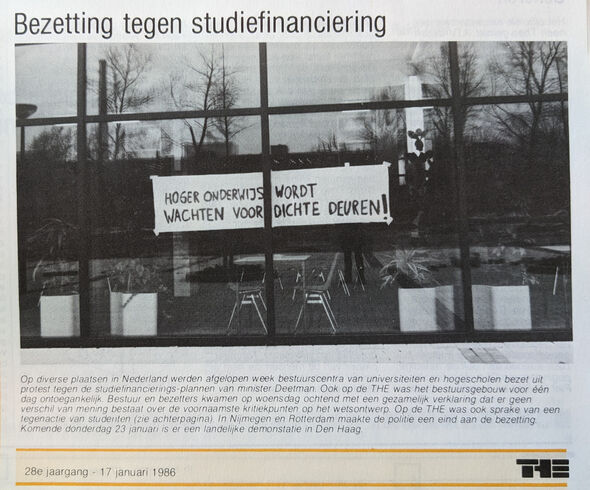 Klimaatactivisten van University Rebellion bezetten vorige week voor de tweede keer in korte tijd vergaderruimtes in Atlas. Ook aan andere universiteiten komen bezettingen de laatste weken weer geregeld voor. Deze manier van demonstreren is niets nieuws: in het verleden werd de universiteit al vele malen bezet door ontevreden studenten. Zo ook in 1986, toen studentenvakbond ESVB met dit middel het College van Bestuur zover wilde krijgen om zich uit te spreken tegen plannen voor een nieuwe studiefinancieringswet. Gudule Martens was destijds één van de bezetters.