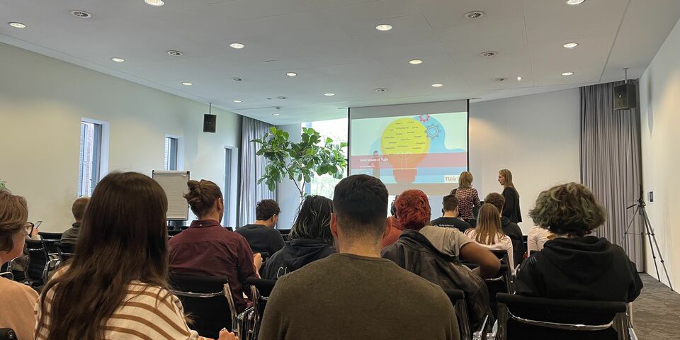 Na deze break-outsessie is er een gezamenlijke nabespreking en ruimte voor vragen en opmerkingen. Er klinkt hier en daar wat constructieve feedback uit de zaal, voornamelijk over de opbouw en betrouwbaarheid van de sessies, gevolgd door een discussie over hoe je een overtreding van de kernwaarden in de praktijk eigenlijk kunt controleren. Iemand steekt Heynderickx een hart onder de riem. “Ik wil je bedanken dat je ons (de TU/e-gemeenschap, red.) hebt samengebracht. Het is best lastig om dit soort dingen bottom-up te organiseren, en ik denk dat je een goed begin hebt gemaakt.”