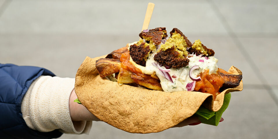 Falafel is een terugkerend thema in haar mobiele keuken. Van knapperige falafelwraps tot falafelsoep en ‘falafel en friet’. “Ik heb twee jaar lang falafel bestudeerd. En nu is ‘ie perfect", aldus Mylonas. "Dat zeg ik niet zelf, dat zeggen de mensen die het geproefd hebben”, vertelt ze trots. “Ik heb mensen uit het Midden Oosten in tranen gezien, die zeiden dat mijn falafel ze zo aan thuis doet denken.” Haar falafel bestaat uit een indrukwekkende lijst van 37 ingrediënten. Benieuwd welke dat zijn? Dat vertelt ze je graag.