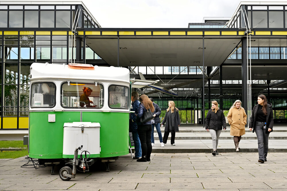 In de culinaire industrie werd ze beschouwd als een van de beste vrouwelijke chefs in Nederland en nu kan je haar eten zelf proeven, gewoon hier op de campus. Om precies te zijn net buiten Metaforum, in de buurt van de piano. Vijf dagen per week staat de Iers-Griekse Julia Mylonas daar vanaf (ongeveer) 11 uur met haar foodtruck ‘Lick the Plate’. Haar specialiteit: falafel. “Ik maak de beste falafel buiten het Midden-Oosten.”