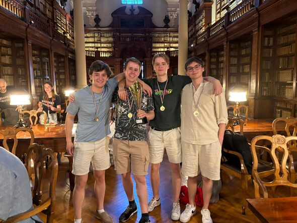Update 1 juli 2024 | En de schaakatleten vonden glorie in Bologna! Team TU/e won het internationale schaaktoernooi. Simon Biennier, Bas van Doren, Jord Ypma en Iwo Godzon (vlnr op onderstaande foto) versloegen sterke teams van achttien verschillende universiteiten uit tien landen, zonder ook maar één wedstrijd te verliezen.