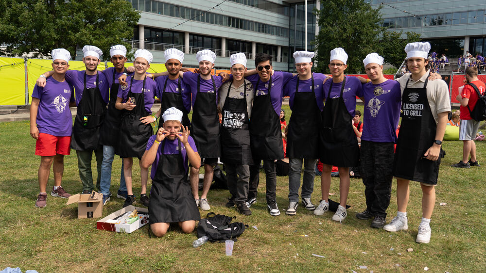 Op het Fluxveld liepen we tegen een stel koks aan van Electrical Engineering die zich hebben laten inspireren door de film Ratatouille. Gehuld in zwarte schort en witte koksmuts, maar zonder rat lag het stel voornamelijk uit te buiken. Toch schijnt er ook gekookt te worden vanavond, al is men vrij cryptisch wat dan precies. Een van de Intro-ouders heeft een getekende snor op z’n smoel. Dat bleek wisselgeld voor een brasincident: zijn muts was gejat door een andere studentenvereniging en de getekende snor was nodig om die terug te krijgen.