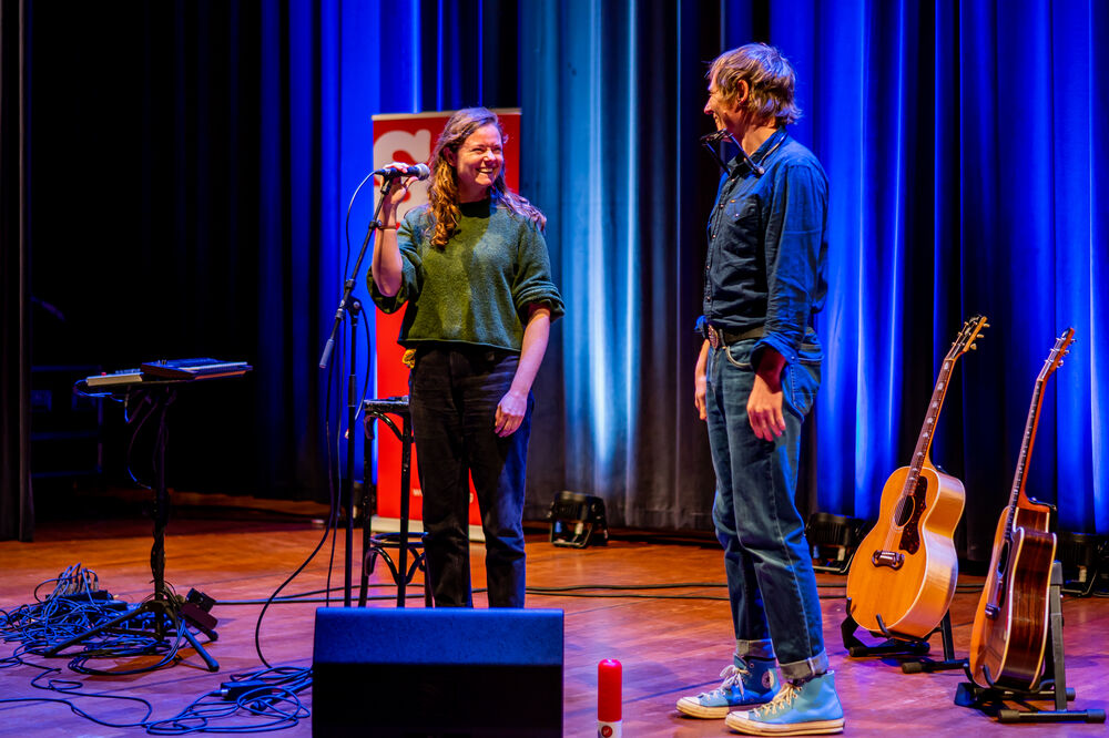 “Normaal gesproken zou je zoiets niet overdag doen, maar als avondprogramma”, legt Liza Gloudemans uit, programmamaker bij Studium Generale. “Maar dat is juist leuk want in de pauze krijg je een heel ander publiek dan ’s avonds. In de avond moeten mensen speciaal ervoor terugkomen naar de uni, dus dan komen alleen de mensen die er voor vol gaan, die hem en zijn muziek al kennen. En overdag komen er ook mensen die denken: oh grappig, gaan we even kijken.”