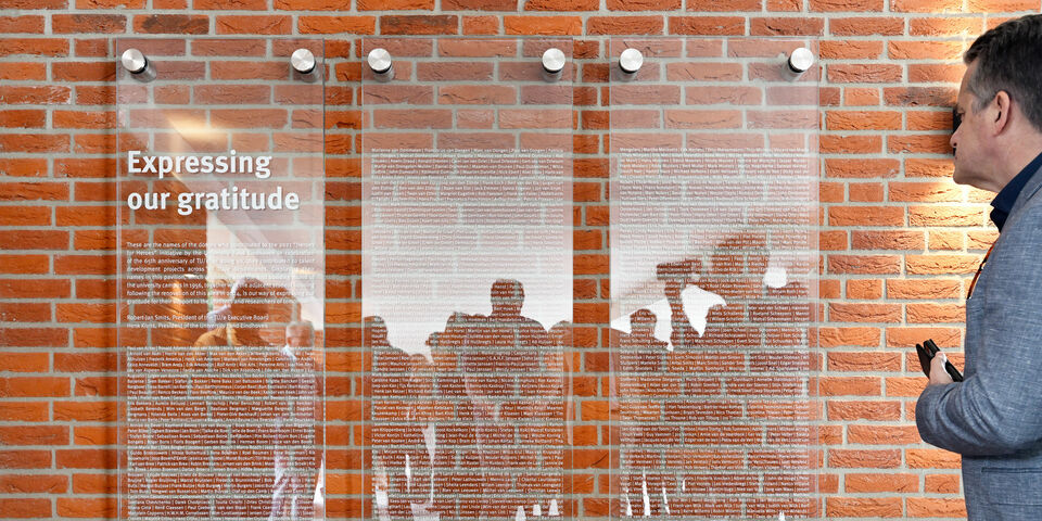 In 2021, ter ere van het 65e lustrumjaar van de universiteit, organiseerde de TU/e samen met het Universiteitsfonds Eindhoven een speciale inzamelingsactie. Donateurs werd eeuwige roem beloofd in de vorm van een namenplakkaat op campus. Gisteren, drie jaar na de actie, werd het plakkaat eindelijk onthuld.
