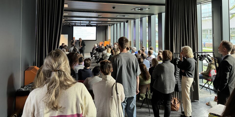 Een uitnodiging om mee te praten over ‘governance’ van de TU/e? Dat klinkt saai! Maar wetende dat de toekomst van de huidige faculteiten op het spel staat, kwamen er veel medewerkers en een enkele student naar Ceres. In een bomvolle zaal vroeg de werkgroep feedback aan de TU/e-gemeenschap. Omdat er te weinig stoelen waren, moesten mensen achter in de zaal staan.