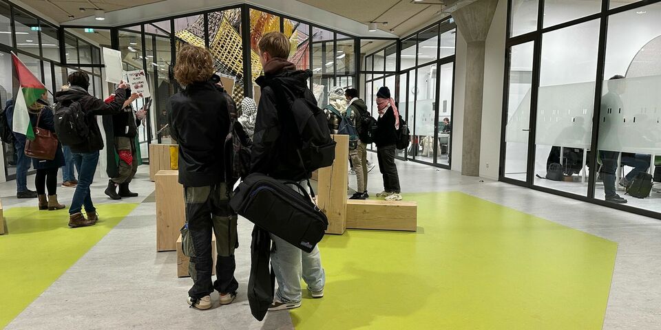 De demonstrerende studenten vinden dat de banden met Israël verbroken moeten worden door het geweld in Gaza. De universiteit heeft al eerder aangegeven die banden niet te willen verbreken. Boa's en beveiliging waren aanwezig bij het protest, maar hebben de studenten laten protesteren.