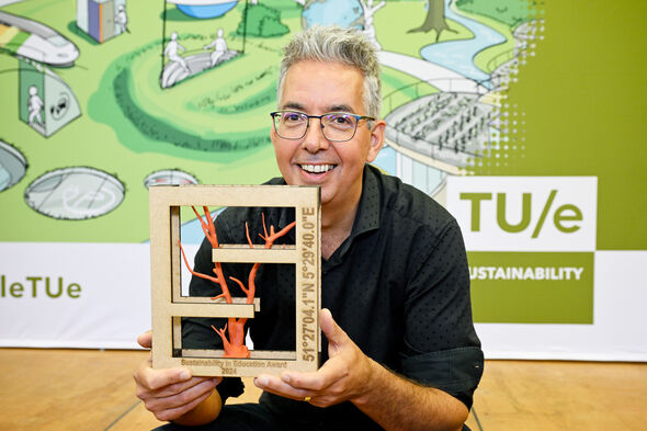 Ook de Sustainability in Education Award die tijdens het evenement werd uitgereikt was zo duurzaam mogelijk. Zo was de award zelf van duurzame materialen gemaakt en stonden er coördinaten in gegraveerd van waar in november – dan is het bomenplantseizoen – een lindeboom (-22.5 kg CO2 aldus de organisatie, red.) wordt geplant ter ere van winnaar Arjan Kirkels. De UD bij Industrial Engineering & Innovation Sciences is blij dat er aandacht is voor duurzaamheid, iets waar hij naar eigen zeggen altijd al mee bezig is geweest. Ook dit jaar alleen al zet hij vier nieuwe vakken op waar duurzaamheid een rol in speelt.