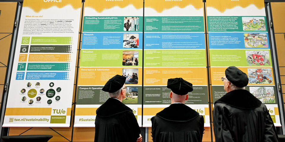 Moet er eigenlijk wel een evenement over duurzaamheid komen? Met die vraag begon de organisatie van de Sustainability Day. Het antwoord was ja, maar dan wel zo duurzaam mogelijk, vertelt Erwin Kerkhof van het TU/e Sustainability Office. Een van zijn belangrijkste taken bij het evenement was het verantwoorden van de keuzes die bij de organisatie werden gemaakt. “Je begint met bedenken: wat gaan we doen en wat hebben we nodig. Neem bijvoorbeeld de lunch: die kunnen we bestellen bij Appèl, maar dan weet je niet precies wat je krijgt. Je kunt ook drie keer een uur bij elkaar gaan zitten om goed af te stemmen wat je precies wilt en waarom. Dan hoop je dat Appèl het ook als een uitdaging ziet om daarin mee te gaan.”