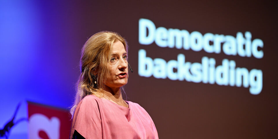 In 2024 wordt er in 76 landen gestemd. Dat betekent echter niet dat het goed gaat met de democratie, herhaalt Vaessen. “Er zijn nu meer autocratieën dan democratieën. Verkiezingen worden gemanipuleerd, stemmers zijn niet vrij en de uitslag is niet eerlijk.” Ze noemt Turkije, India en Hongarije en werkt het voorbeeld van Belarus uit. “Bij de verkiezingen van 2020 verloor Loekasjenko, maar hij vervalste de uitslag en claimde zeventig procent winst.”