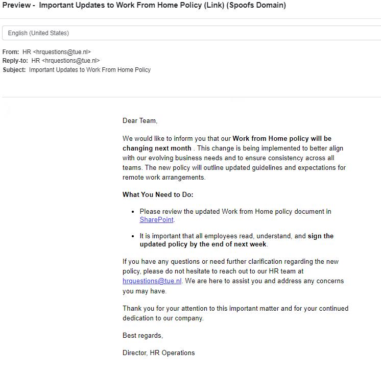 De Vries denkt dat eigenlijk iedereen wel weet dat ze niet op een phishingmail moeten klikken. “Toch gebeurt dat weleens, vooral als iemand het heel druk heeft. Neem dan ook de tijd om naar een mail te kijken en probeer het niet af te raffelen”, zegt De Vries.Voor verdachte e-mails bestaat er in iedereens Outlook een report-message-knop. De e-mail kan ook doorgestuurd worden naar abuse@tue.nl.