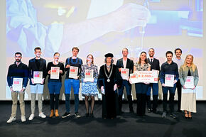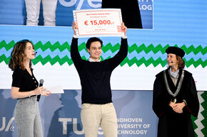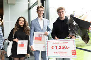 Later, in de Zwarte Doos, werd de prijs voor beste bachelorscriptie uitgereikt aan Wiktor Kwapinski (Applied Physics) voor zijn onderzoek naar het koelen van nanodraden; extreem kleine draadjes die aan de TU/e worden ontwikkeld en gebruikt kunnen worden in bijvoorbeeld toekomstige zonnecellen of kwantumcomputers. Door oververhitting aan te pakken, zouden deze draden volgens Kwapinski een belangrijke rol kunnen spelen in fotonische chips. “Dit is nog nooit vertoond”, zei Lenaerts naar aanleiding van het juryrapport. “Het laat een brede wetenschappelijke kennis zien. Dit is een ongelooflijke prestatie.”