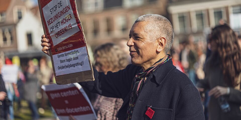 Hiermee sluit Eindhoven aan bij de lopende estafettestaking waarbij hogeronderwijsinstellingen in verschillende steden om de beurt voor een dag het werk en de studie neerleggen. Afgelopen week werd er al in Leiden, Utrecht en Nijmegen gestaakt. En gisteren liet ook de achterban van het hoger onderwijs in Amsterdam zijn stem horen.