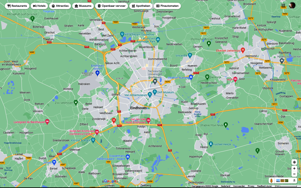 Natuurlijk gaat er geen enkele student in het Belgische Poppel wonen. En toch past die uitspraak bij de ambitie van de regio. Kijk maar eens naar Silicon Valley (figuur 1) en Boston (figuur 2) en vergelijk dit met Eindhoven (figuur 3). De vergelijking van deze regio’s op gelijke schaal die alle drie overeenstemmende ambities hebben, illustreert de uitdaging die we hebben liggen op het gebied van huisvesting en infrastructuur.