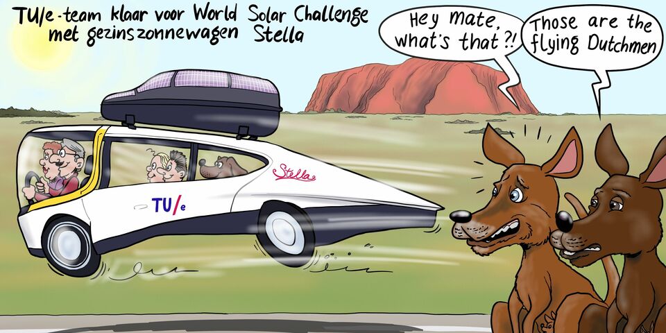Cartoonist, karikaturist en illustrator Sandor Paulus verbeeldt in iedere Cursor een actuele kwestie aan de TU/e. In deze Cursor: Solar Team Eindhoven, dat met zonnewagen Stella de laatste voorbereidingen treft voor de World Solar Challenge die op 6 oktober van start gaat.
