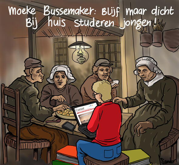 Cartoonist, karikaturist en illustrator Sandor Paulus verbeeldt in iedere Cursor een actuele kwestie. Deze keer: minister Jet Bussemaker wil dat studenten gaan studeren in hun eigen omgeving om de reiskosten te drukken.