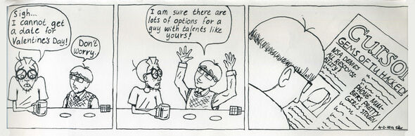 Studente Electrical Engineering Elles Raaijmakers probeert overal de humor van in te zien en dit met de wereld te delen in de vorm van cartoons en stripverhaaltjes. Deze keer: Ronnie ziet mogelijkheden om meisjes te scoren.