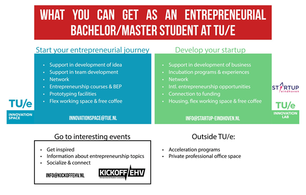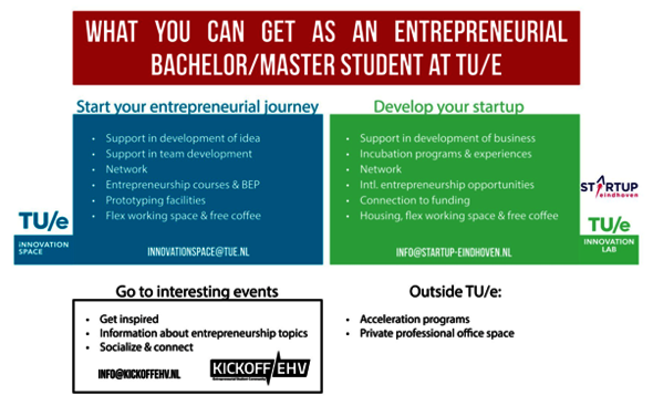 En, last but not least, is er Kickoff/ehv, een studentenbestuur voor beginnende ondernemers. Kickoff organiseert allerlei evenementen/workshops/borrels om ondernemers te helpen en te connecten. Kudo’s bijvoorbeeld voor de infographic hieronder, puik Kickoff werk! En ze starten binnenkort met het werven voor een nieuw bestuur. Eveneens een mooi moment voor aspirant-ondernemers om van start te gaan!