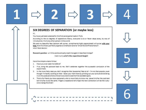Now, I want to be the first in the world (wow!) to prove that the six-degrees-of-separation theory perfectly applies to ESWP, aka the ‘Eindhoven Small World Phenomenon’. How? With the help of some randomly selected TU/e students, a challenging game, and a few rules to be followed rigidly.