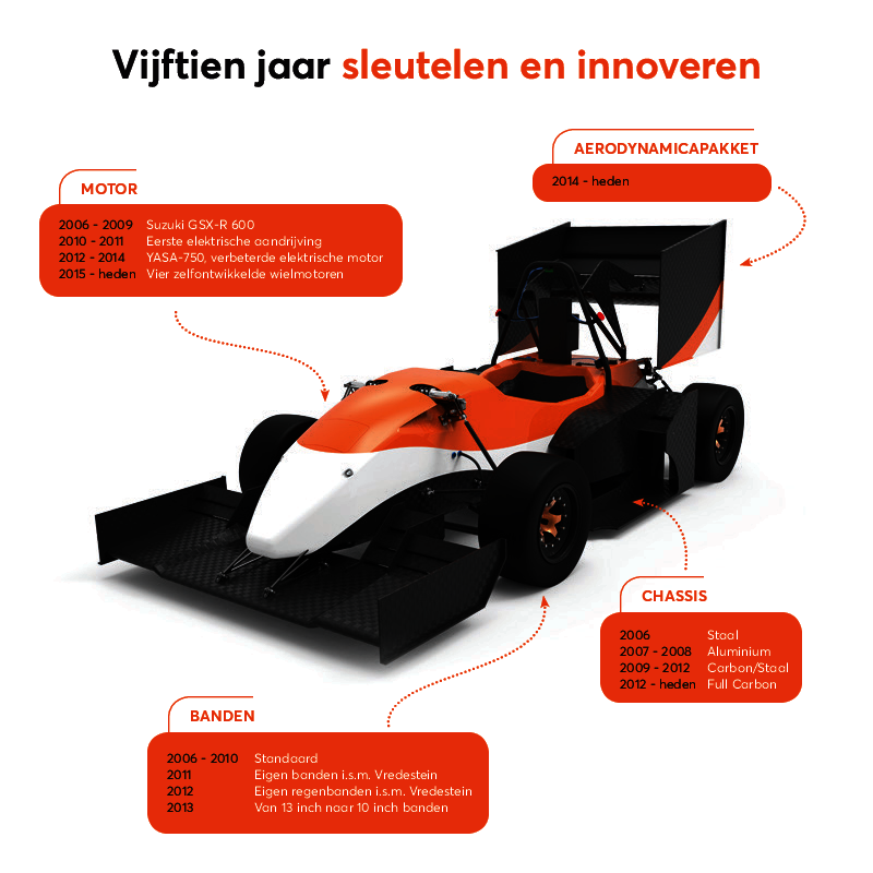 Voorafgaand aan het nieuwe seizoen, dat volgende week in Assen op het TT-circuit van start gaat met de Formula Students Netherlands, blikt Cursor terug op de rijke geschiedenis van één van de oudste studententeams van de Eindhovense universiteit. Door de jaren heen groeide URE uit tot een team dat inmiddels samenwerkt met 89 partners, dat al 130 thesisverslagen heeft opgeleverd en gedurende 13 actieve seizoenen in 33 evenementen van start ging met 30 podiumplaatsen als resultaat.