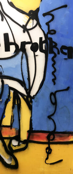 Op de gang had zich intussen een aardig publiek verzameld (de nodige pers incluis), dat er getuige van was hoe Brood in minder dan een minuut tekeer ging met een zwarte spuitbus. Om zich daarna weer terug te trekken in zijn kamertje. Meijer: “Er kwam een ander mannetje met een roller, de zoon van Nina Hagen (zangeres, red.), en die ging de vlakken met kleuren invullen. Ik had schrik - was hij nou echt in een minuut klaar? Maar daarna ging hij weer door. Zo’n anderhalf uur is hij bezig geweest.”