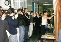 En zo kwam het dat medewerkers uit Meijers groep niet lang daarna gezamenlijk de nodige strekkende meters gangwand wit sausden, ter voorbereiding op de komst van de befaamde excentrieke kunstenaar. “’s Avonds en in het weekend, in ploegendienst. Want dat mocht natuurlijk niet via de officiële route.”