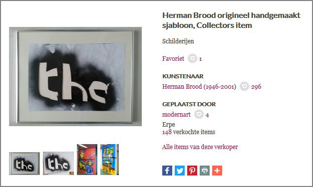 ‘Ik was daar als verslaggever van het universiteitsblad bij aanwezig’, schrijft een aanbieder. ‘Ik heb de sjablonen na afloop opgeraapt en meegenomen.’ Wie deze verslaggever was en hoeveel hij uiteindelijk opstreek met deze verkoop, daar komen we niet achter - het online bieden stagneerde bij 41 euro. De ‘the’ op A3-formaat duikt later op een andere site opnieuw op, inmiddels ingelijst en wel aangeprezen als collector’s item.
