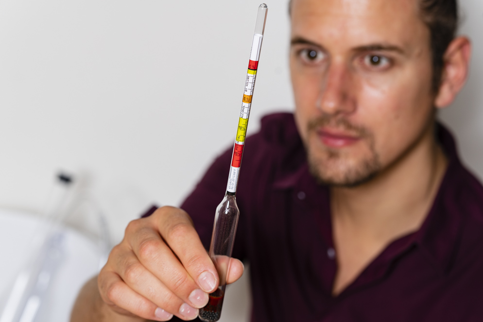 Wijn is toch wel een schoolvoorbeeld van chemie. Een perfecte hobby dus voor een chemicus. “Mijn vader maakte vroeger al wijn. Ik ben er dus mee opgegroeid. En zoals die dingen gaan, maak je dan samen ook wel eens een fles. En na een tijdje heb je dan 140 liter wijn in je woonkamer staan.” Aldo Brinkman is wetenschapsredacteur bij het Communicatie Expertise Centrum van de TU/e. Door zijn scheikundige achtergrond zorgt hij voor de vertaling van het onderzoek op de universiteit naar het grote publiek. In zijn vrije tijd experimenteert hij ook nog altijd, met lekkere uitkomst.