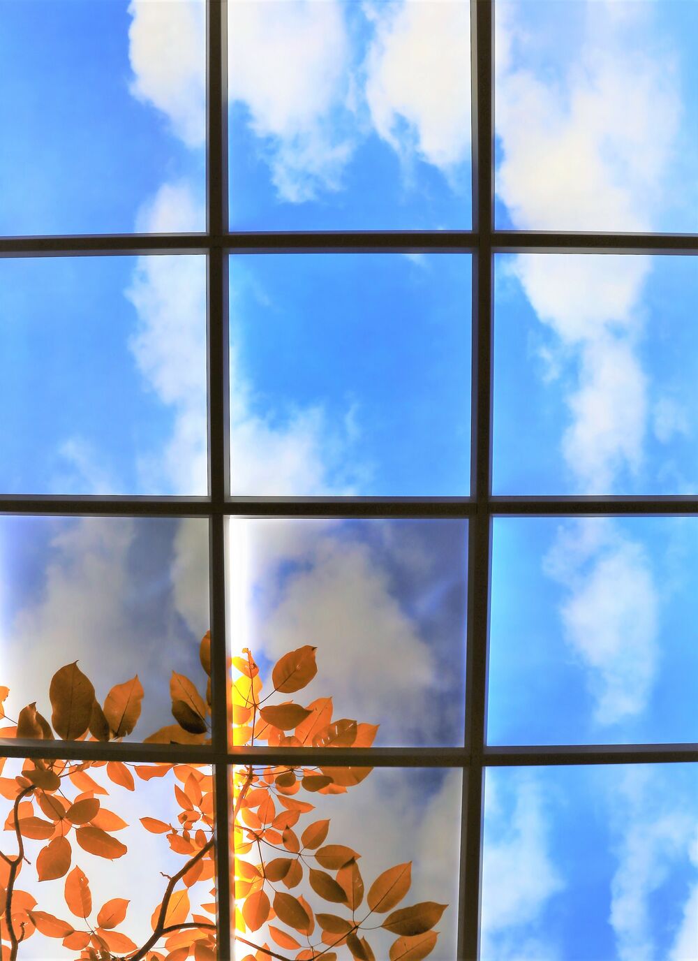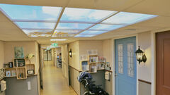 Een geraffineerd samenspel tussen ledlicht en bedrukte panelen geven de illusie van daglicht. Een open blauwe hemel met hier en daar witte wolken maken de gang tot een open ruimte. De trucage is twee keer in het plafond verwerkt waardoor de lange looplijnen vervagen en het tunneleffect wordt opgeheven.