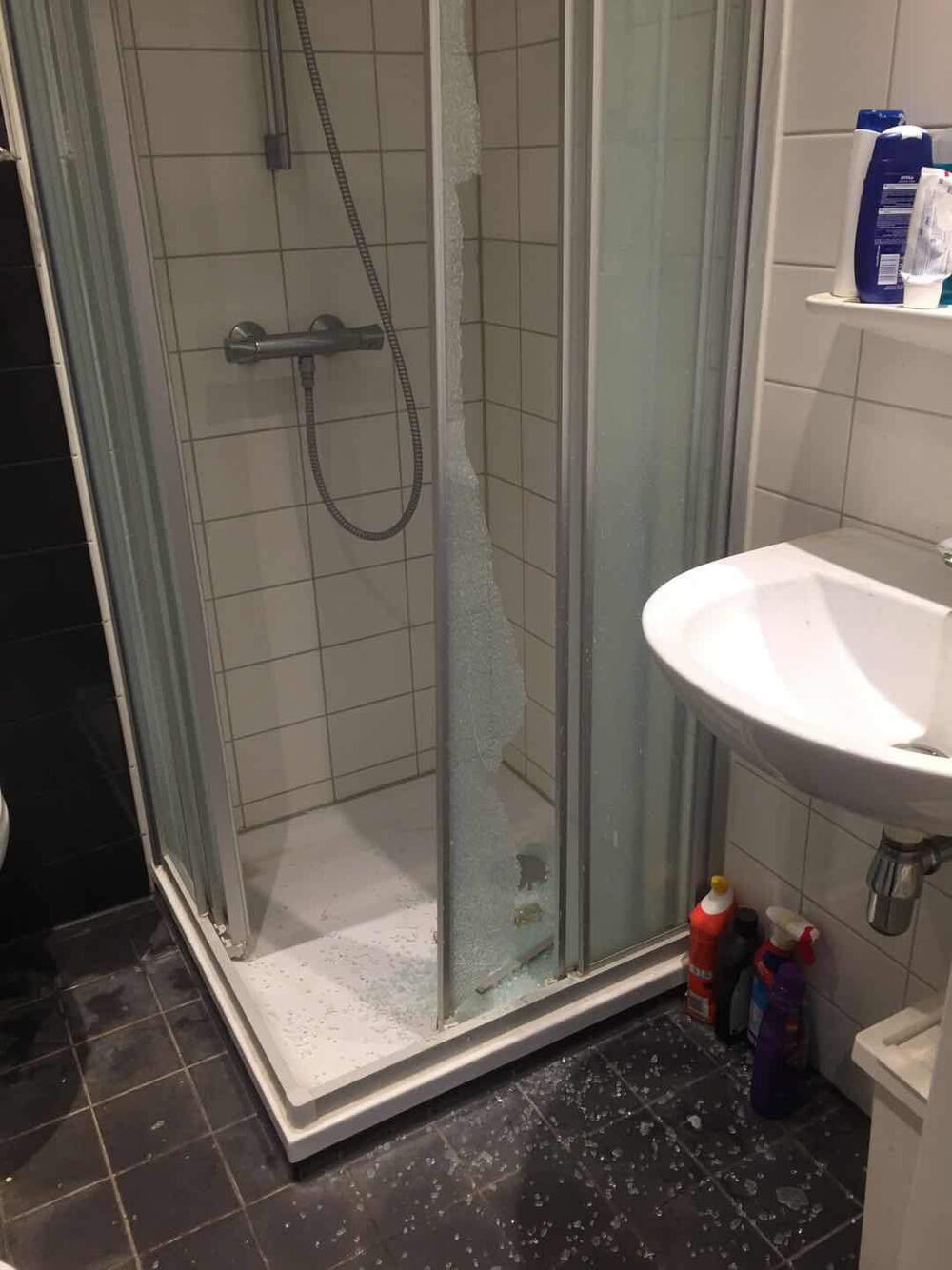 Liu vervolgt: “Ik nam contact op met Camelot en zei ik dat ik zou betalen om de douchedeur te laten repareren. Kort daarna ging ik op vakantie. Tijdens mijn vakantie nam Camelot contact met me op om mijn kamer binnen te gaan, gezien het briefje op mijn deur, om de douchedeur te repareren. Ik gaf ze toestemming en toen hebben ze de reparatie uitgevoerd. Hiervoor hebben ze me 910,80 euro in rekening gebracht. Voor een douchedeur! Ik belde ze om een bewijs van de gemaakte kosten te krijgen: ik wilde een bonnetje zien. Dat heb ik nooit gekregen. Later belden ze me terug en zeiden dat het glas van hoge kwaliteit was. Ik vroeg om bewijs van de hoge prijs maar niets, alleen een factuur die ik moest betalen.”