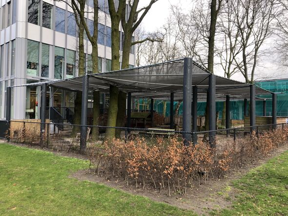 Inmiddels heeft de speelplaats een permanente overkapping gekregen.