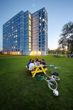 Luna is niet de enige woontoren op de campus. Tegelijk met Luna opende in september 2016 ook woontoren Aurora de deuren en het gebouw beschikt over meer dan driehonderd woonunits. Aurora kwam ter vervanging van de 84 zeecontainers (zogeheten spaceboxen), waarin van 2005 tot 2016 voornamelijk internationale studenten waren gehuisvest.