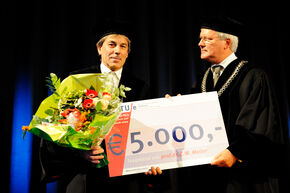 De dag erna drong pas tot hem door in welk illuster gezelschap hij zich bevindt; in de afgelopen twintig jaar ontvingen slechts negen anderen de titel en onder de eerdere laureaten bevinden zich Nobelprijswinnaars. Wie het heeft geregeld en hoe, de pionier op het gebied van supramoleculaire materialen heeft geen flauw benul. ”Ik las ergens dat de minister daar nog over gaat. Ik kan me dat haast niet voorstellen… Het is moeilijk in te schatten waaraan ik die onderscheiding heb te danken - al snap ik ook wel dat het onderzoek in onze groep de afgelopen jaren niet gemiddeld is geweest en dat ik daarin een aandeel heb gehad.”