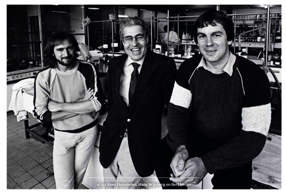 Door ‘dom toeval’ kwam de Groninger in 1982 na zijn promotie in Brabant terecht. Meijer had een postdocschap geregeld in San Diego en zou eigenlijk daarna naar Shell gaan - net als de meeste gepromoveerden in die tijd. “Wijnberg kwam vlak daarvoor naar me toe met de mededeling dat iemand van Philips in zijn kamer zat en ze een chemicus zochten. Of dat niet iets voor mij was.” Die ‘iemand’ bleek adjunct-directeur Feye Meyer te zijn en Bert Meijer kreeg het voorstel eerst een dag te komen kijken en daarna volgde een aanbod. “Mijn vrouw had al een baantje in de VS, maar vanwege de oliecrisis besloot ik het zekere voor het onzekere te nemen en ‘ja’ tegen Philips te zeggen.” De eerste baan die hij daar kreeg aangeboden vond hij ‘helemaal niks’. “Ik herinner me nog goed dat de trein stopte bij Vught en dat ik moest huilen van teleurstelling. Had ik daar nu alles voor afgezegd? Gelukkig kreeg ik al snel een leukere functie en ik heb het uiteindelijk enorm naar mijn zin gehad en veel geleerd van Feye.”