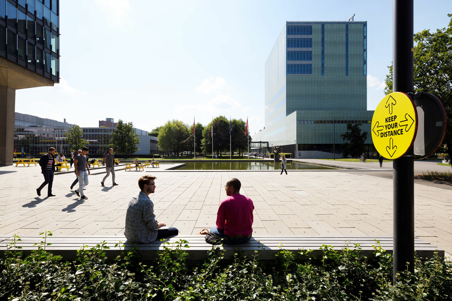 Aan een grote tafel in het Auditorium zitten Yingchao Du en Jinfan Xu rustig te werken achter hun laptops. De masterstudenten Data Science zijn bezig met hun masterthesis. Ze hoeven dus niet meer op de campus te zijn voor colleges, maar zijn heel blij dat ze weer op de campus kunnen studeren. “Hier studeren is veel efficiënter voor ons dan thuis werken. We voelen ons veilig hier, de bewegwijzering en borden helpen enorm om afstand te houden.”