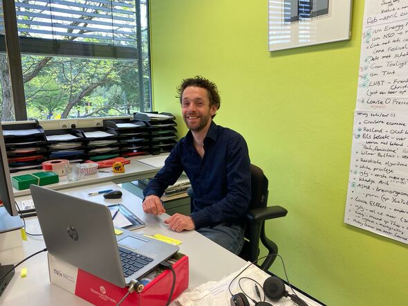 Gijs van de Sande, programmamaker bij Studium Generale, is vandaag op de campus om de voorbereidingen te treffen voor de eerste fysieke lezing van het nieuwe seizoen. “Woensdag 2 september staat Mindy Howard in de Blauwe Zaal met ‘Blast off!’ Het wordt een hybride lezing: eentje met het publiek deels offline en deels online.” Om het offline deel goed en volgens de coronaregels te laten verlopen, is Gijs vandaag nog druk doende. Weer op de campus werken, vindt hij wel prettig: “Het is nog rustig, maar het is toch prettig dat als je binnenloopt, je je collega’s gewoon weer even direct wat kunt vragen en in de ogen kunt kijken. ‘Hey, goedemorgen, hoe gaat het?’ Die kleine momentjes doen je goed.”