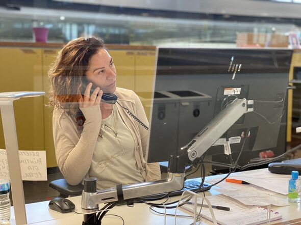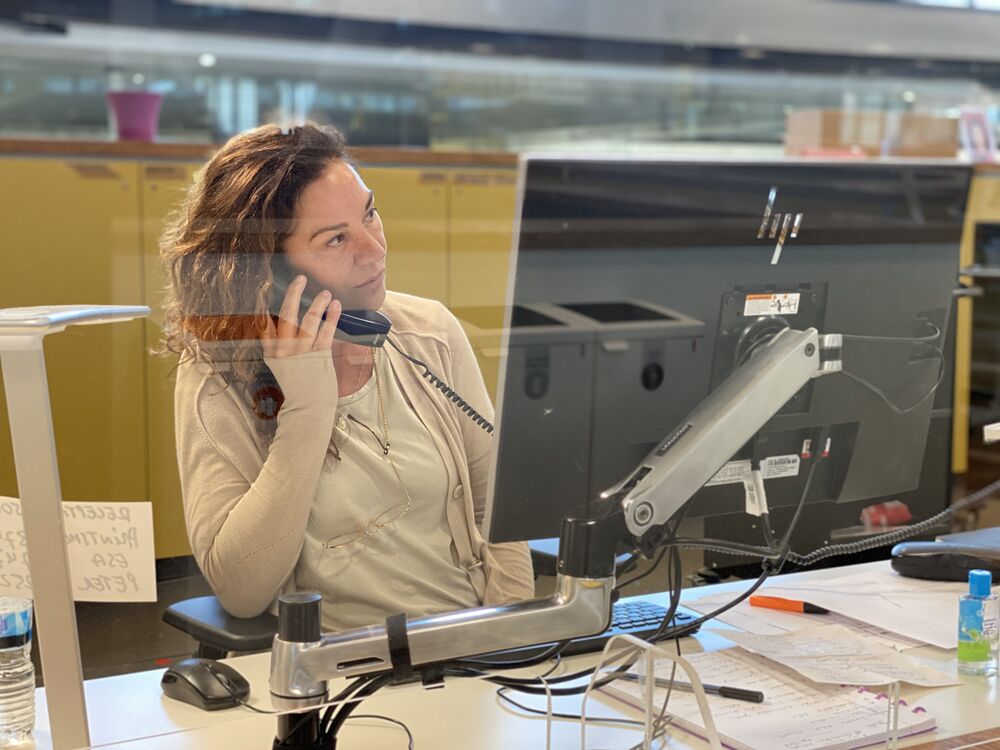 Vanachter een groot plexiglas scherm beantwoordt Geraldine Suijkerbuijk, hostess en front office medewerker bij de bibliotheek, vragen van studenten; via de telefoon en live. De meeste vragen gaan over de procedure voor het boeken van studieplekken in MetaForum.